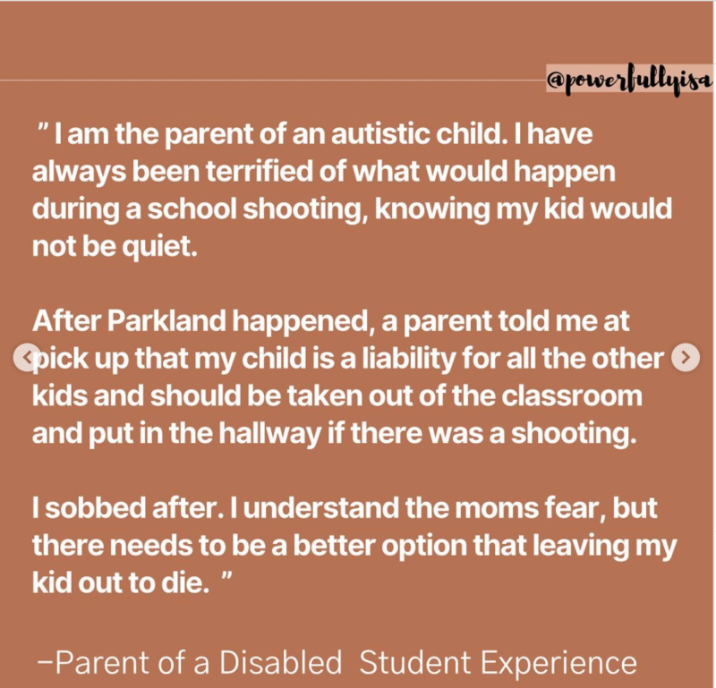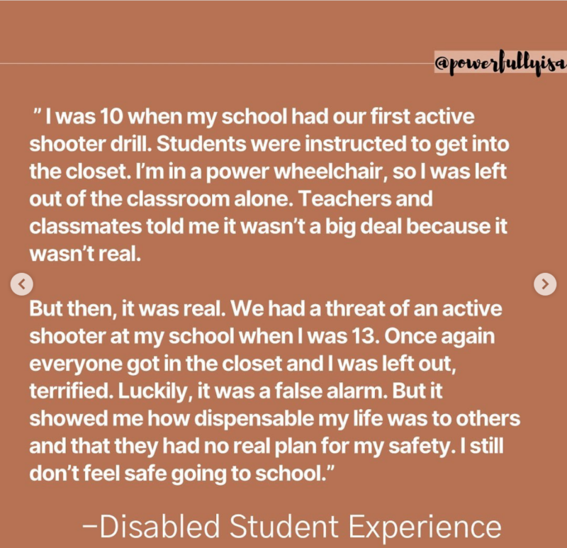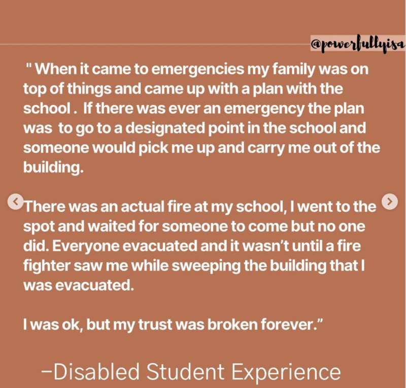 Isabel Mavrides-Calderón—the 18 year-old founder of disability advocacy group Powerfully Isa and one of Teen Vogue’s 21 Under 21, put out a call on her Instagram. She asked people with disabilities whether their K-12 schools had made realistic, practical plans for their safety in an emergency situation, and the answer was a resounding no.