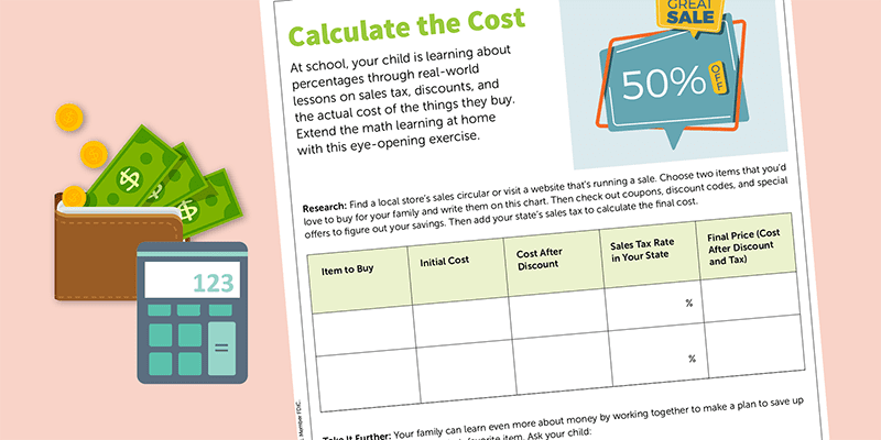 Extend math learning at home by calculating sales tax, discounts, and more. Grades 3–8.