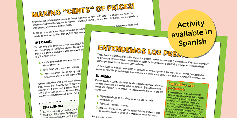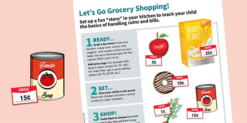 Teach the basics of coins & bills by setting up an at-home store in the kitchen. Grades Pre-K–3.