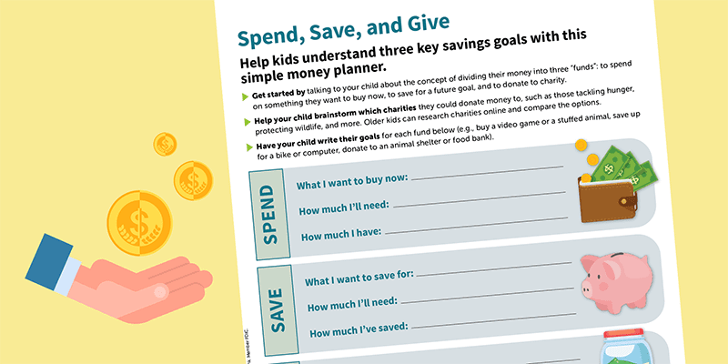 Understand three key savings goals with this simple money planner. Grades 3–8.